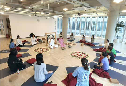 在老师们的带领下,大家通过肩颈、腰背理疗,对肩颈、胸腔、腰背做全面放松,增强身体灵活柔韧度,释放身体疼痛,改善身体状态。最放松的音波疗愈则是采用以铜锣为主的古老音疗工具结合颂钵吟唱,去平衡内在能量的失调。