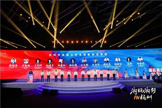 陈越孟等导师为杭州创业未来之星授奖,12名杭州创业未来之星代表中有海外名校的毕业生,也有职业技术学院毕业的创业者,杭州赋予了他们人生出彩的机会。