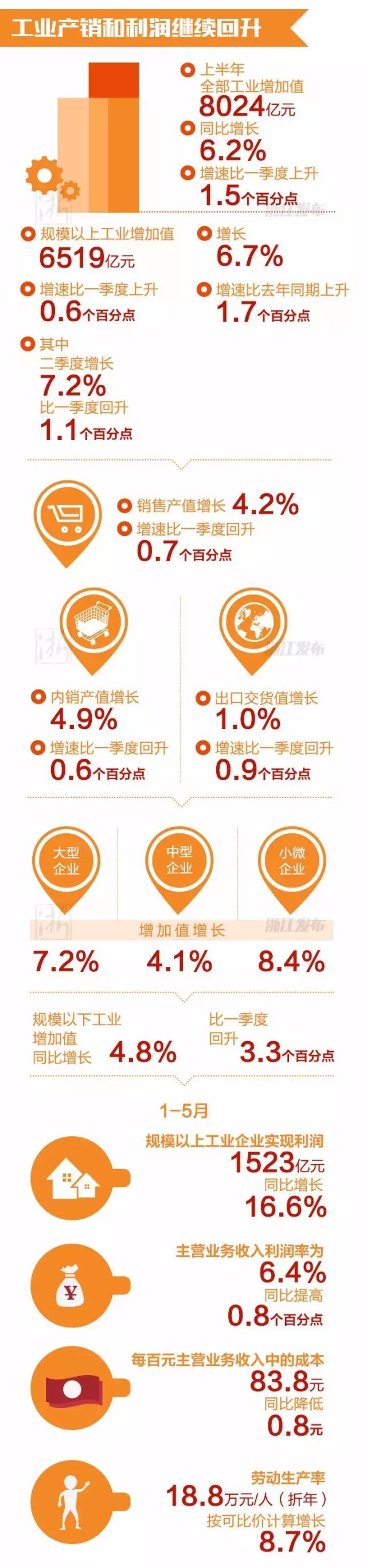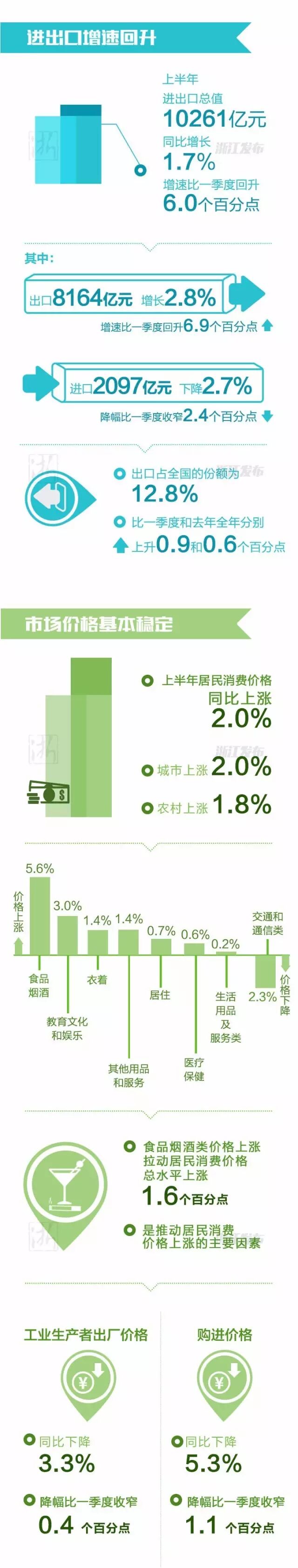 上半年浙江经济运行情况出炉 GDP增速7.7%
